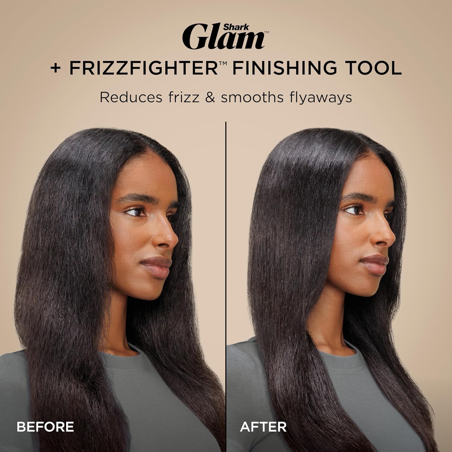 Meet the Shark Glam Hot Tool Air Styling & Drying System. Innovative heat-controlled ceramic and powerful airflow unlock smooth silky finishes, glossy blowouts and ultra high-shine end styles without heat damage in wet to dry mode. Shark Glam Styler Suite includes Shark Silki straightener for wet-to-straight styling in as little as one pass*, and the Shark Glossi styler for ultra-fast, bouncy blowouts with maximum gloss.** *using wet mode on wavy hair in lab settings **shine/frizz vs. air drying