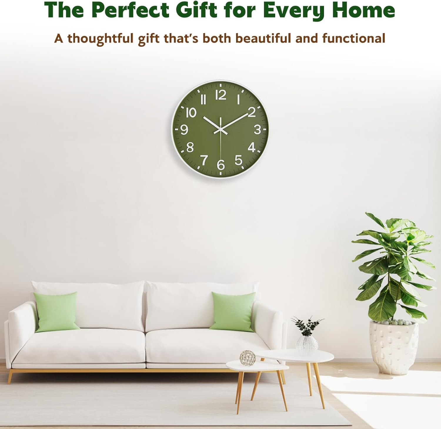 Modern Wall Clock That Elevates Your Space: This stylish analog wall clock features a muted olive green face with a clean white frame—perfect for modern wall decor. A great fit for living room decor, kitchen walls, gyms, and office wall decor with a touch of calm elegance