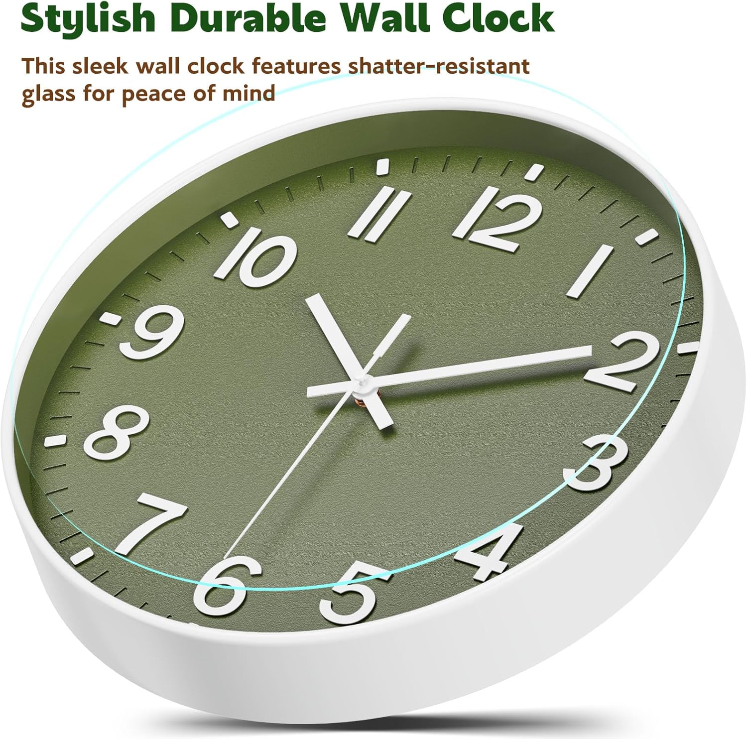 Easy-to-Read Analog Design: The large white Arabic numbers stand out beautifully against the green face, making this a highly readable analog wall clock even from a distance. Perfect for any home or office environment