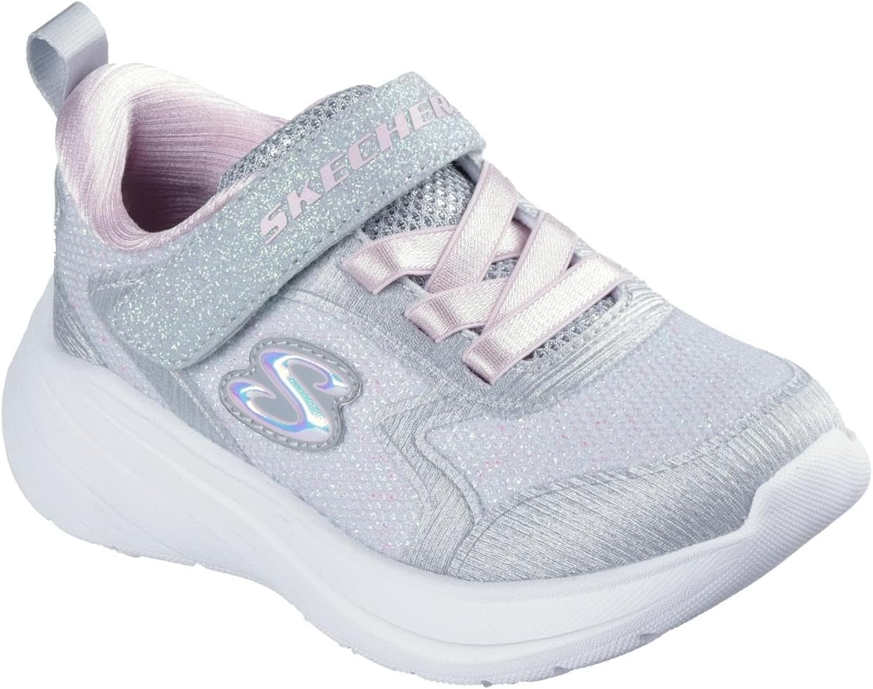 Step into style and comfort with these versatile tennis shoes designed for active lifestyles. The Wave 92 features a sparkle mesh upper with stretch laces and an adjustable instep strap for a customized fit. Perfect for girls shoes enthusiasts, these white sneakers combine sporty aesthetics with practical features including a cushioned comfort insole and flexible traction outsole. The easy-on, easy-off adaptive closure ensures hassle-free wear, while the machine washable design makes maintenance simple.