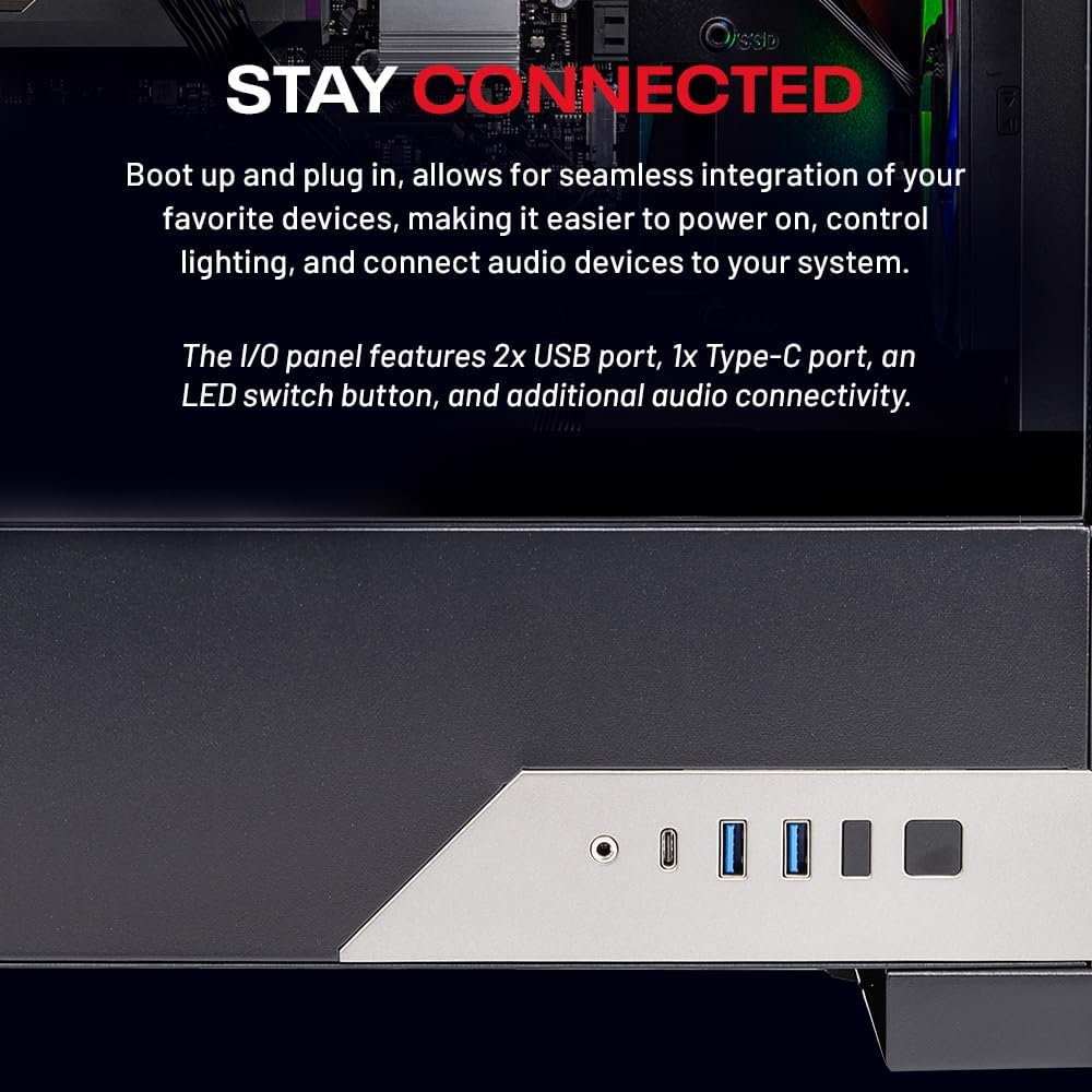 This powerful gaming PC is capable of running all your favorite games such as Call of Duty, Fortnite, Escape from Tarkov, Grand Theft Auto V, Valorant, World of Warcraft, League of Legends, Apex Legends, PLAYERUNKNOWN’s Battlegrounds, Overwatch 2, Counter-Strike 2, Battlefield V, Minecraft, ELDEN RING Shadow of the Erdtree, Rocket League, Baldur’s Gate 3, Dota 2, HELLDIVERS 2, Monster Hunter, Terraria, Rainbow Six Siege, Dragon’s Dogma 2, Black Myth Wukong, Marvel Rivals, more at Ultra settings, detailed 1080p Full HD resolution, and smooth 60+ FPS gameplay.