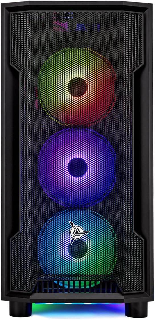 High-Performance Air Cooler: Maximum Airflow & ARGB Fans | Skytech Shadow Gaming Case with Tempered Glass, Black | 1 Year Warranty on Parts and Labor | Free Technical Support | Assembled in the USA