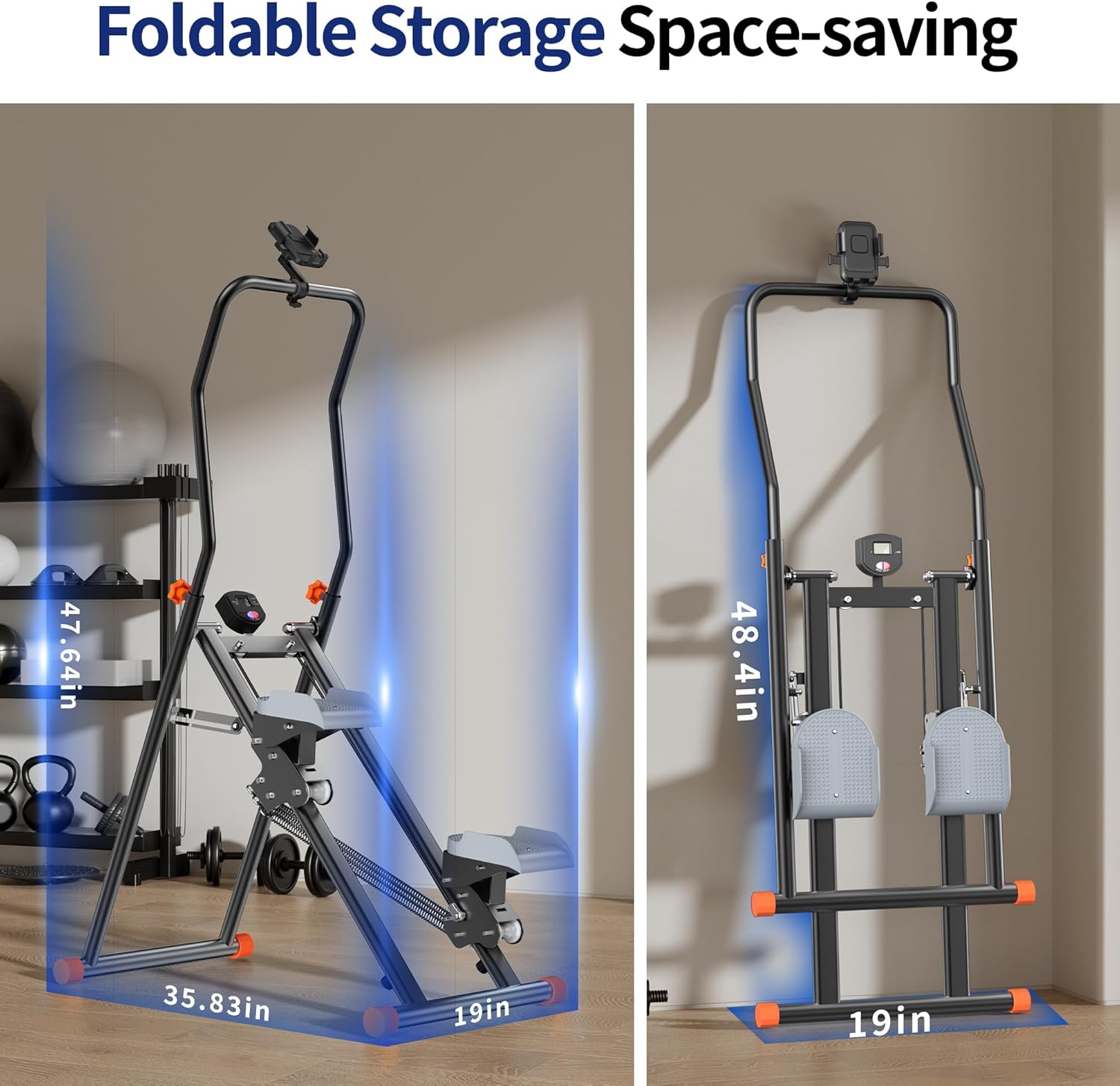 【 Space-Saving Design 】 Designed with convenience in mind, the stair climber exercise machine is foldable and easy to store. Perfect for home gyms or small spaces, it’s a practical addition to any workout routine. With a robust frame that supports up to 300 lbs, this stair master built to last. Non-slip pedals and secure handlebars ensure a safe and stable workout, even during intense sessions.