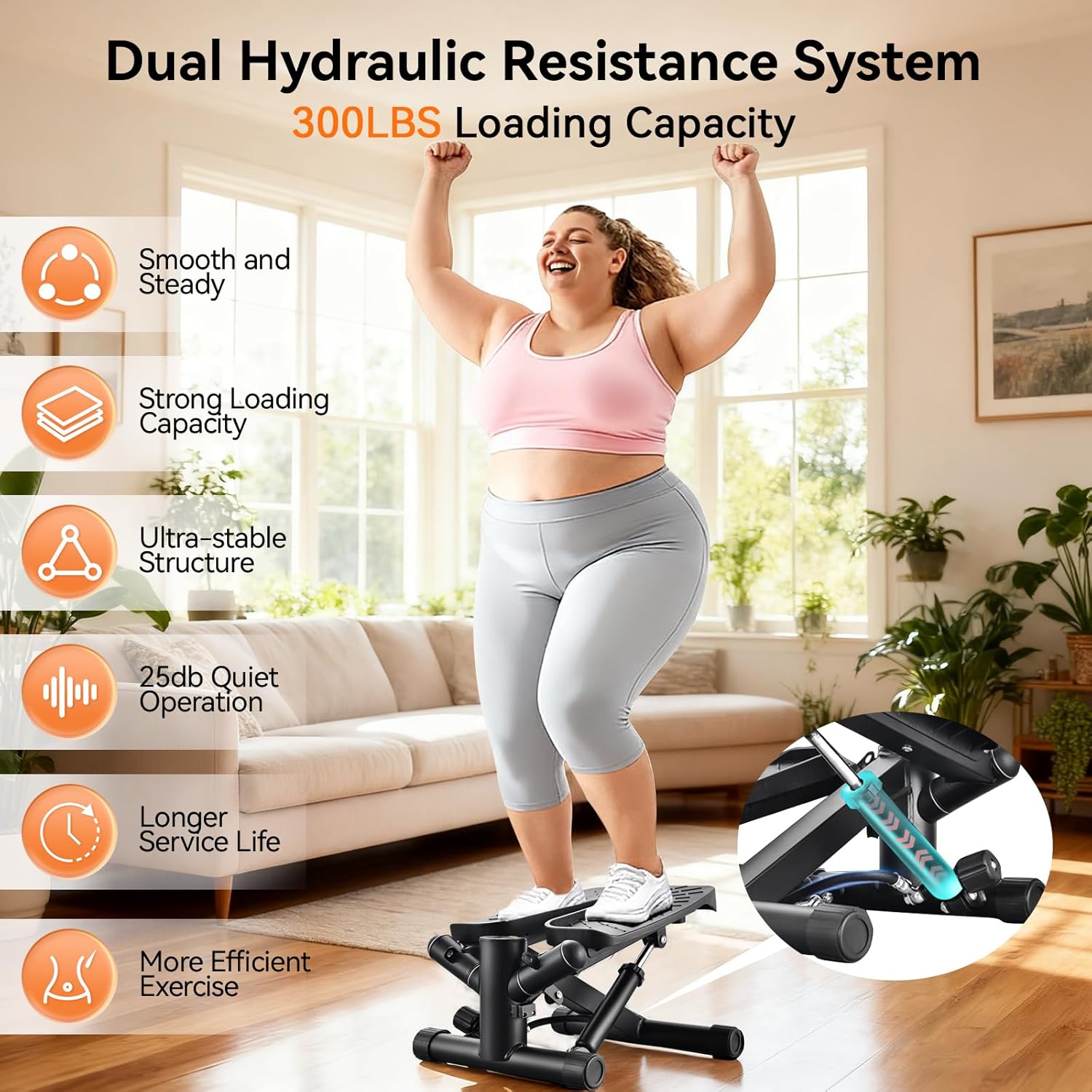 【Whisper-Quiet Hydraulic Operation】Advanced dual hydraulic cylinders deliver ultra-smooth motion at <30dB – quieter than a library whisper. Enjoy distraction-free steppers for exercise at home without disturbing others.