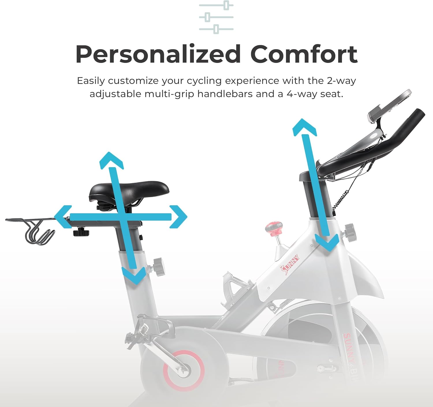 【ADJUSTABLE HANDLEBARS and SEAT】Enjoy personalized comfort with a 4-way adjustable seat and 2-way adjustable handlebars on this exercise bike. Tailor your riding experience by easily adjusting the seat and handlebars, ensuring a perfect fit.