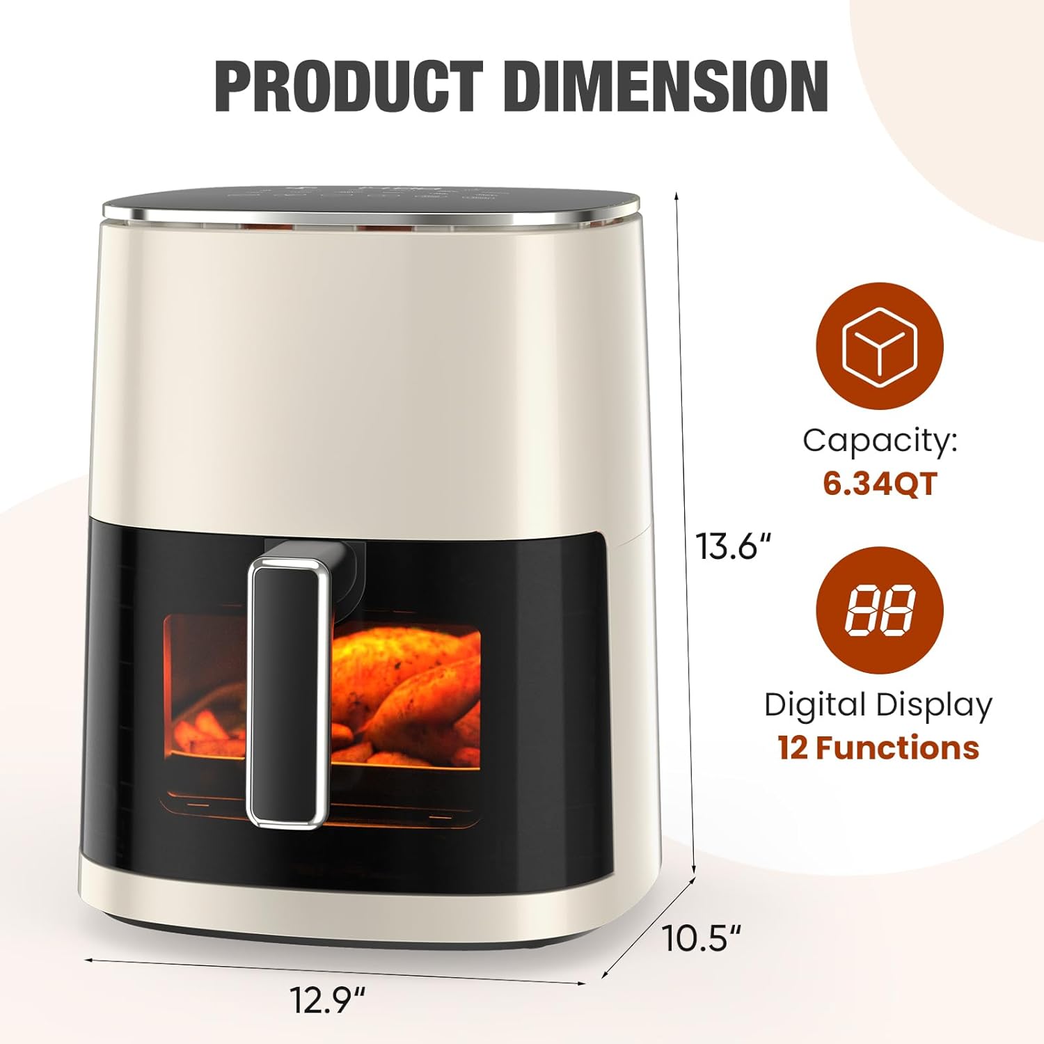 Clear Viewing Window: Allows you look food without opening the air fryer, helping to maintain consistent temperature and cook times for perfectly crispy results.