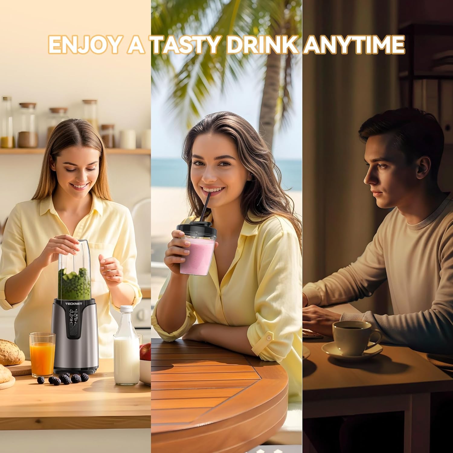 The video showcases the product in use.The video guides you through product setup.The video compares multiple products.The video shows the product being unpacked. TECKNET 1000W Bullet Blender for Smoothies Merchant Video
