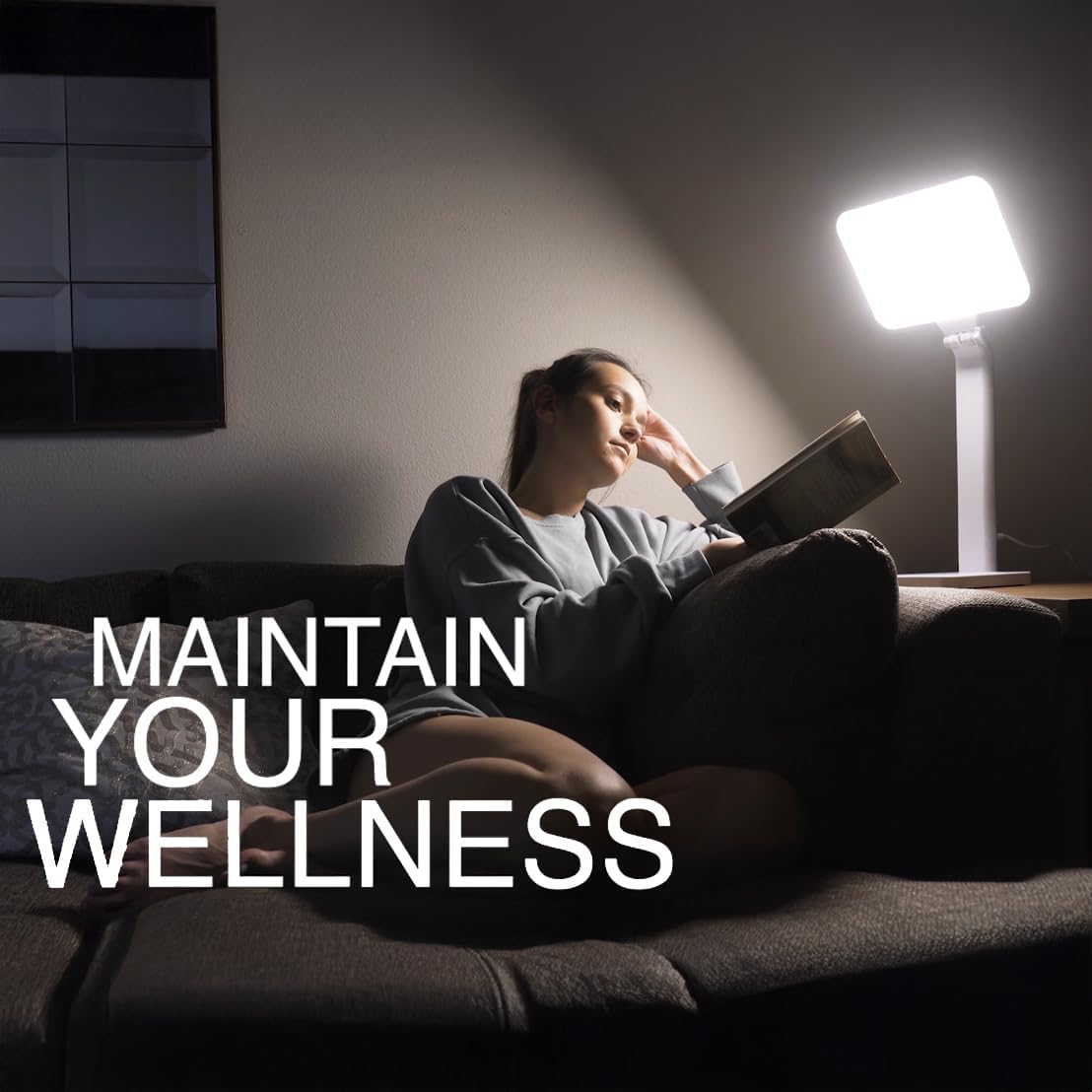 Powerful 10,000 LUX Light Therapy Lamp: Our 10000 lux light therapy lamp shines with 10,000 LUX of glare-free white light, providing optimal bright light therapy. This powerful light therapy lamp is designed to significantly lift mood and boost energy, especially during gloomy days.
