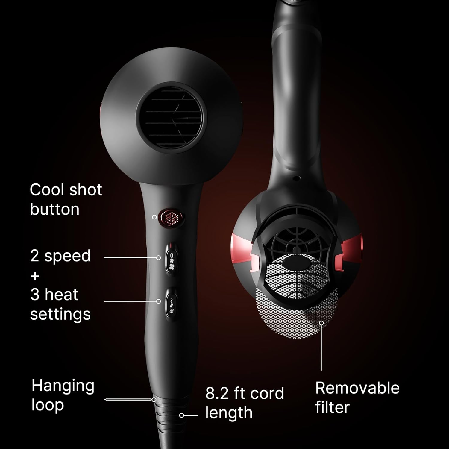 8.2ft Cord with Narrow and Wide Attachments: Our narrow attachment allows for a more concentrated airflow, perfect for accuracy and fast drying. The wide attachment provides a more dispersed airflow which creates a gentler distribution of air. Ideal for all hair types, our attachments help create volume while maintaining your natural hair texture. The 8.2ft cord offers added flexibility and convenience during use.