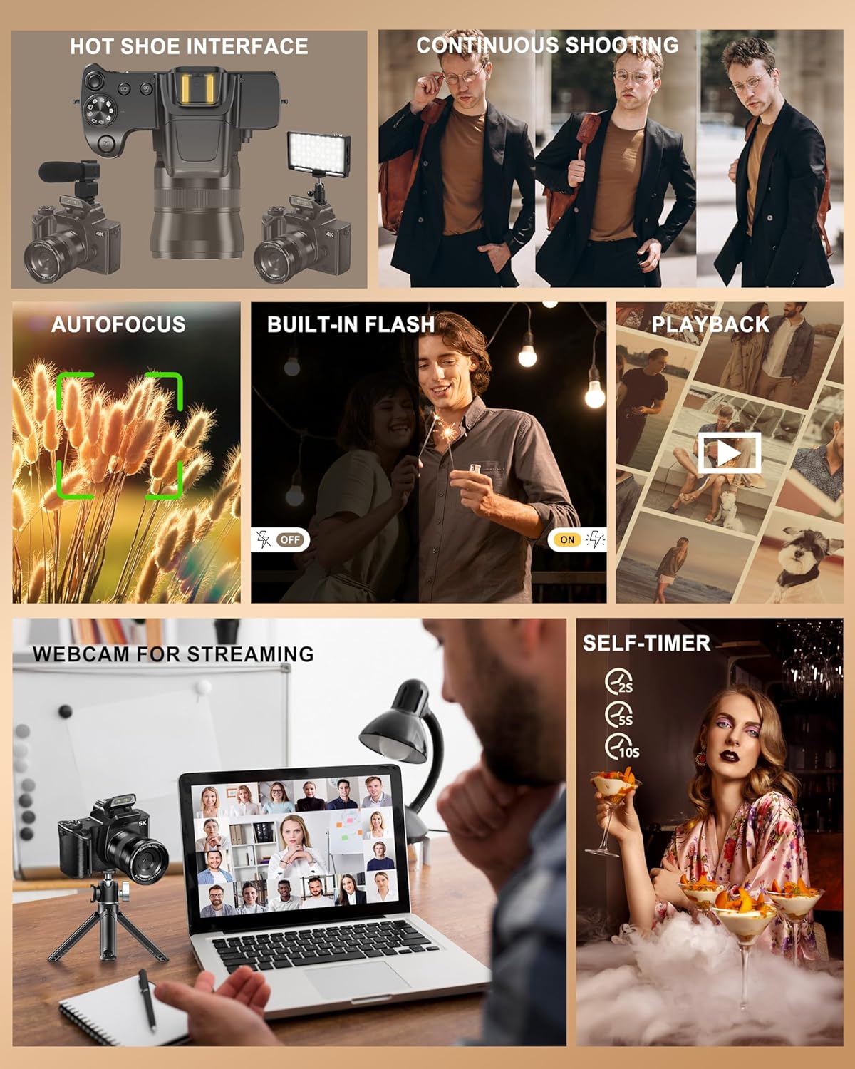💡Please Pay Attention – 1.This is a regular Camera suitable for beginners, teenagers, and non-professionals with lower needs. It is not suitable for professionals who have high demands for photography, such as requiring the same image and video quality as professional cameras. 2. External devices such as microphones or lighting accessories require their own power source; the camera does not supply power to these accessories.