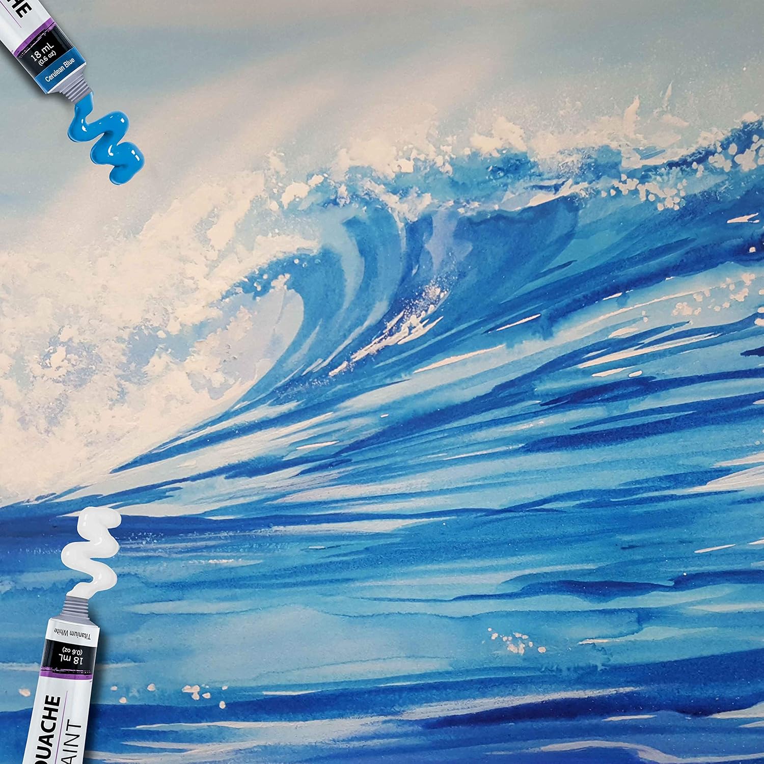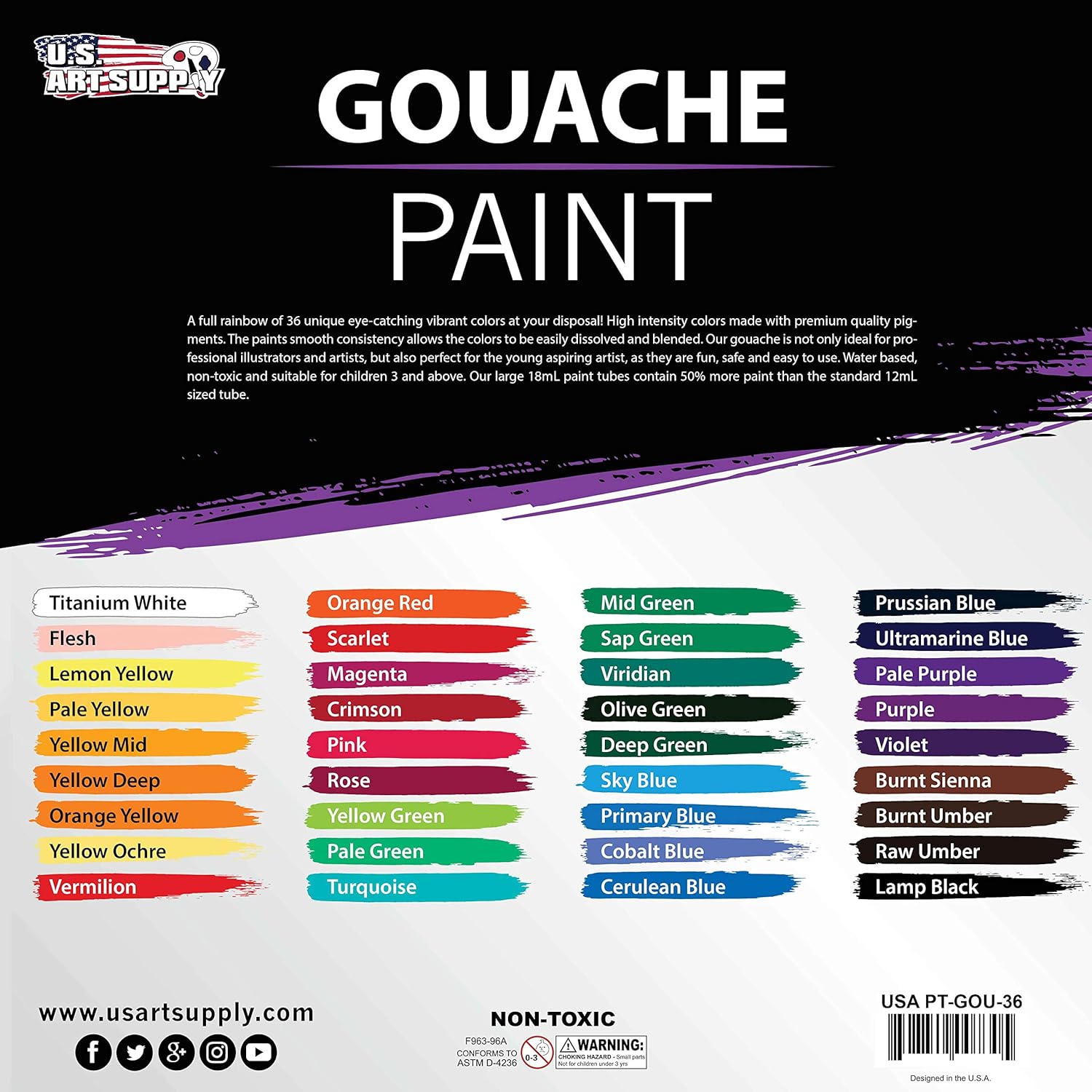 36 Color Set: This gouache paint set contains 36 unique colors in large 18ml tubes. The paint is made with artist pigments for high intensity and a smooth consistency.