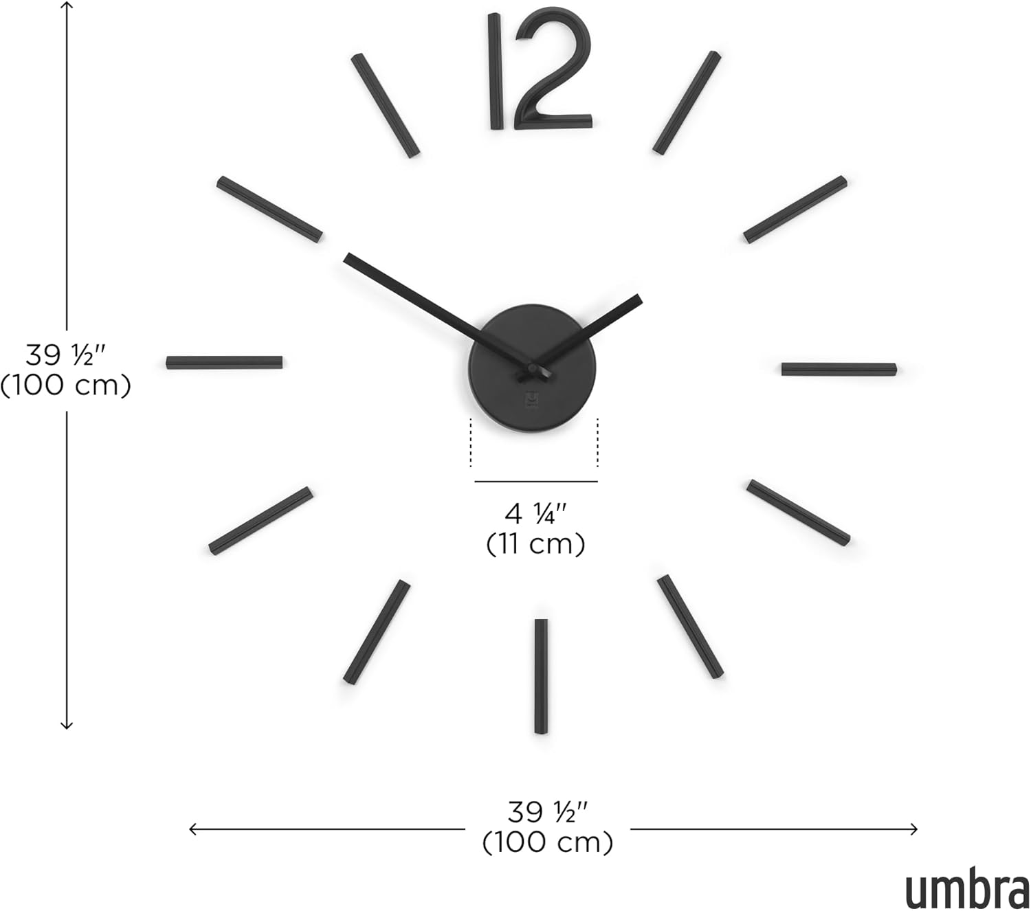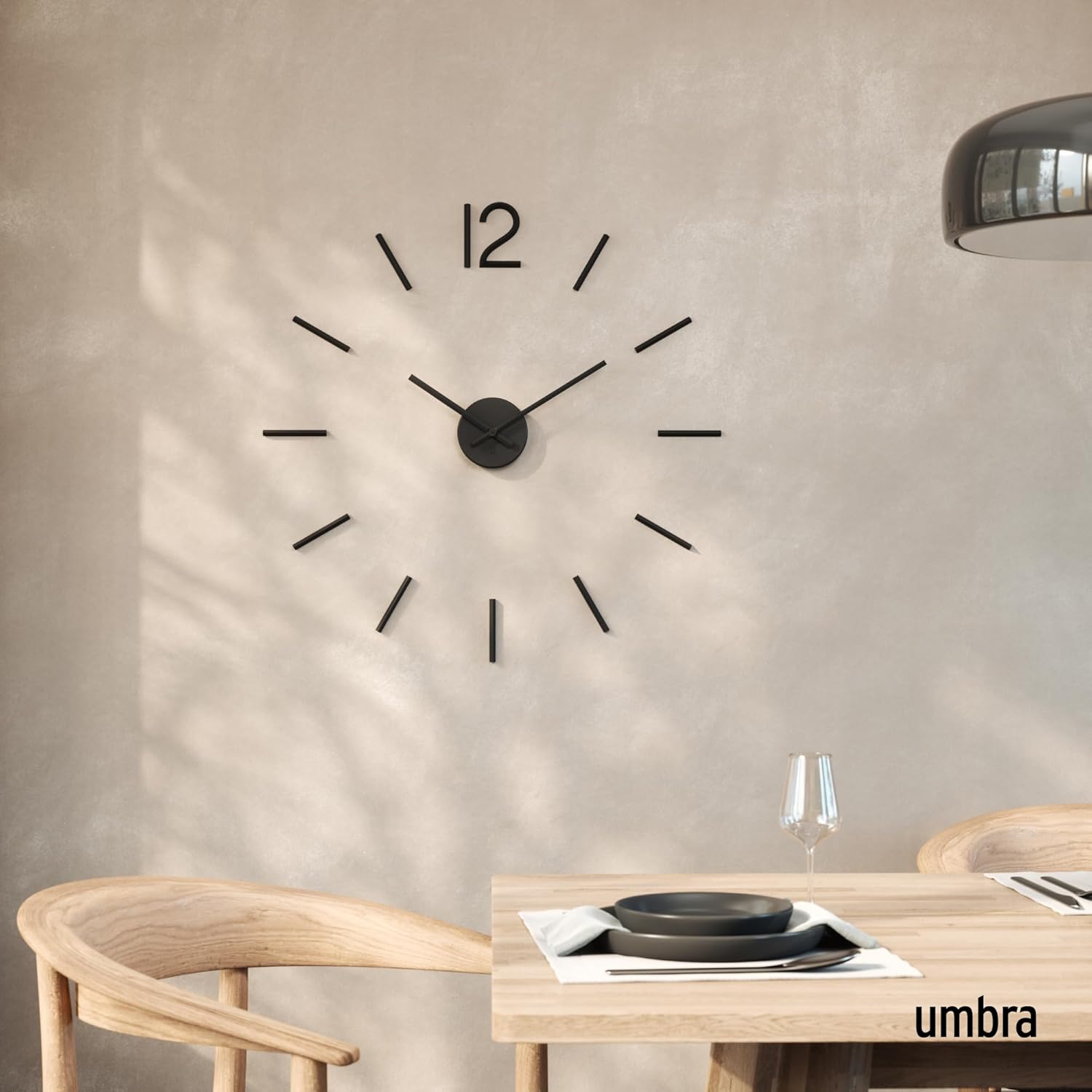 ALL UMBRA CLOCKS ARE TESTED IN-HOUSE: Inside our factories is a wall where every single one of our clocks is tested to make sure it ticks just right. It comes with mounting hardware and has silent sweeping quartz clock mechanisms ensuring quiet, accurate time keeping
