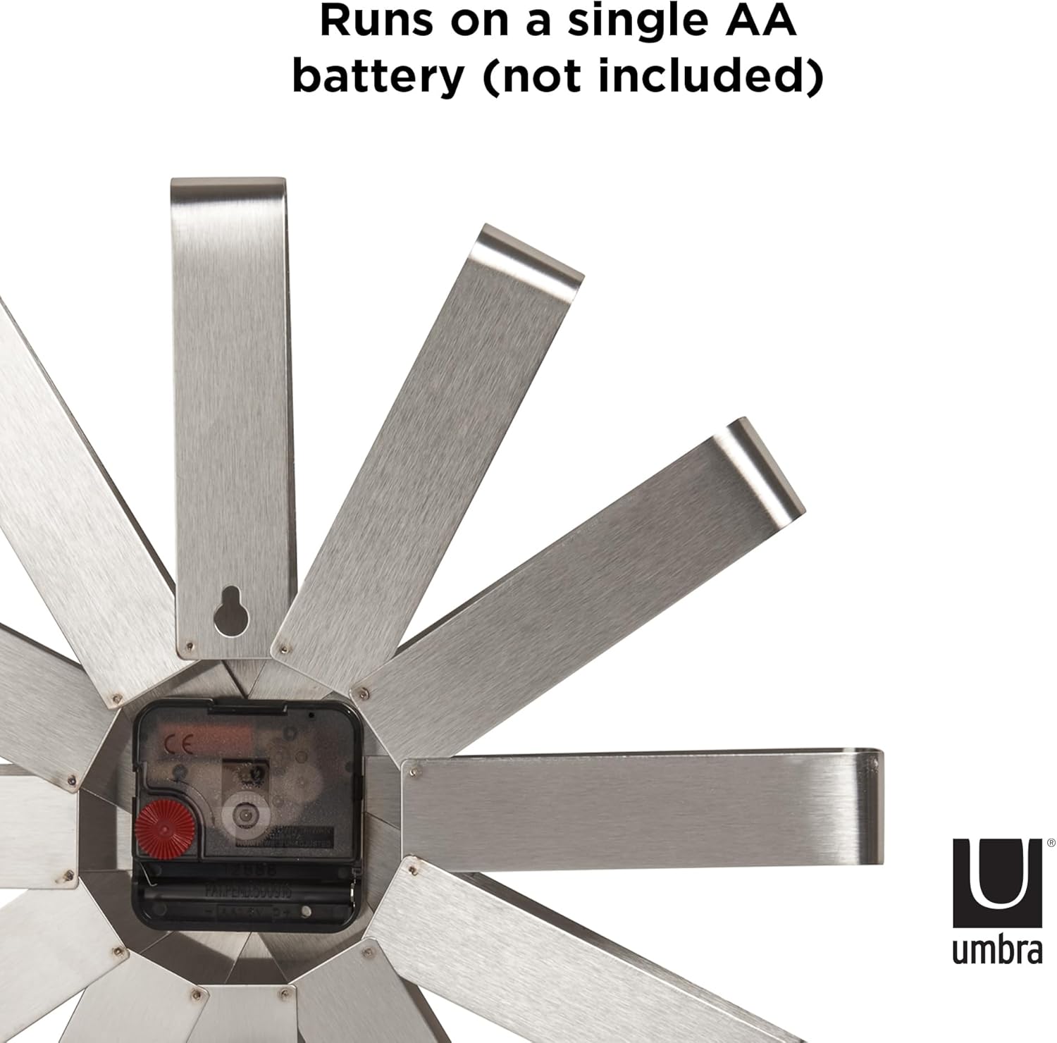 TESTED FOR QUALITY ASSURANCE: Ribbon wall clocks battery operated design uses a single AA battery (not included) and every single Umbra clock is tested to ensure accurate time keeping