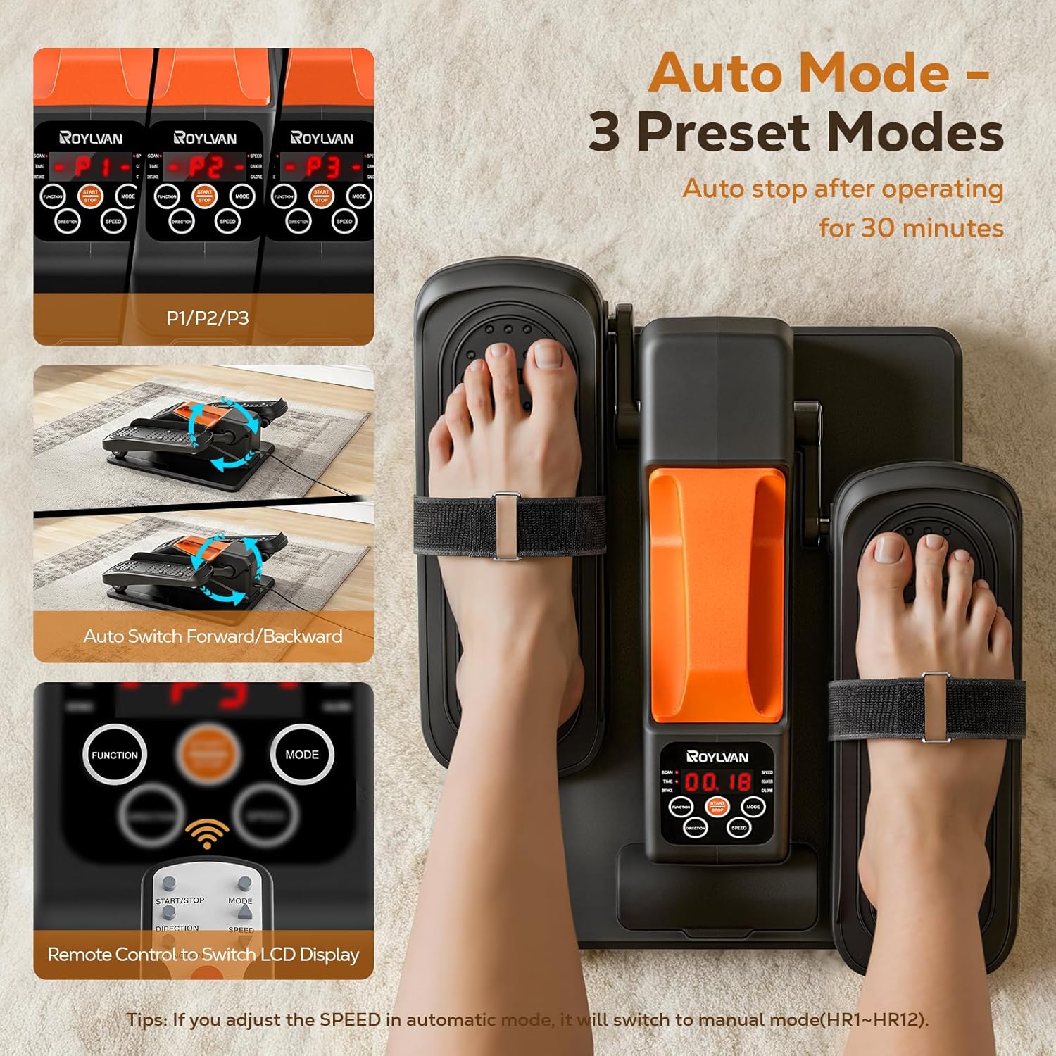 Multi-mode Adjustable: The ellipse leg exerciser as seen on tv has 3 preset modes and 12 levels of speed. It supports pedals to switch forward and backward direction, suitable for different workout needs.