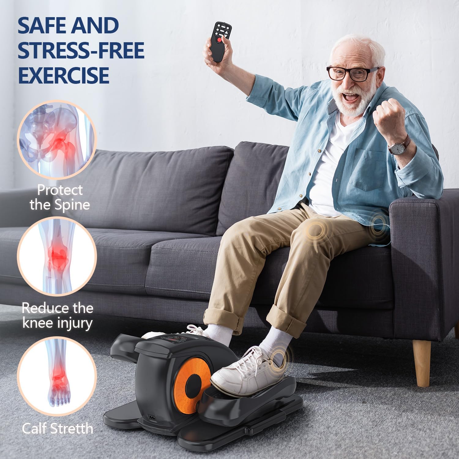 Remote Control: Pedal exerciser for seniors features a thoughtful remote control that allows you to change mode without bending over, reducing strain on your back