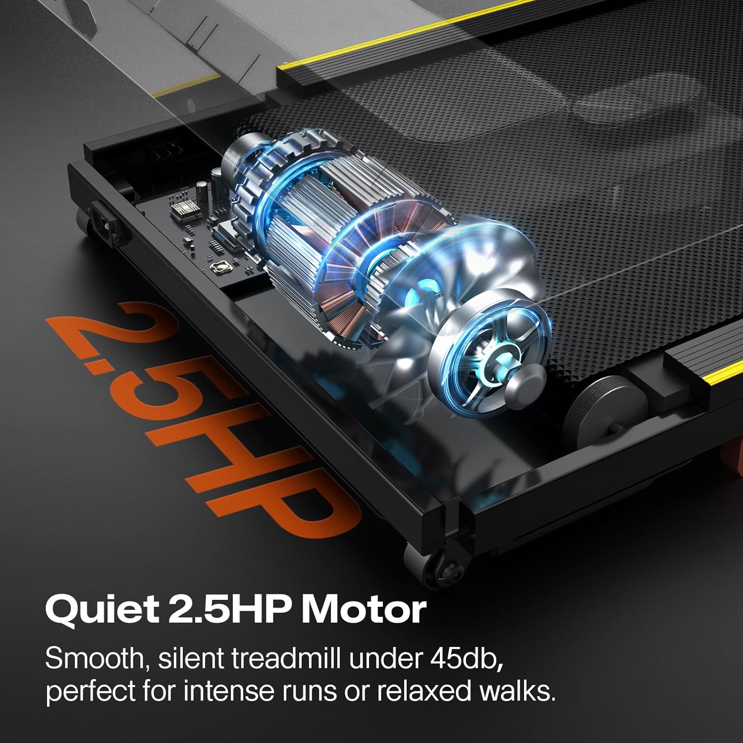 🏆【Powerful Yet Portable & For Under Desk Use】2.5HP motor delivers buttery-smooth performance, while built-in wheels let you glide it anywhere. Tuck it under your desk post-meeting or slide it under the bed—your workout, your way.