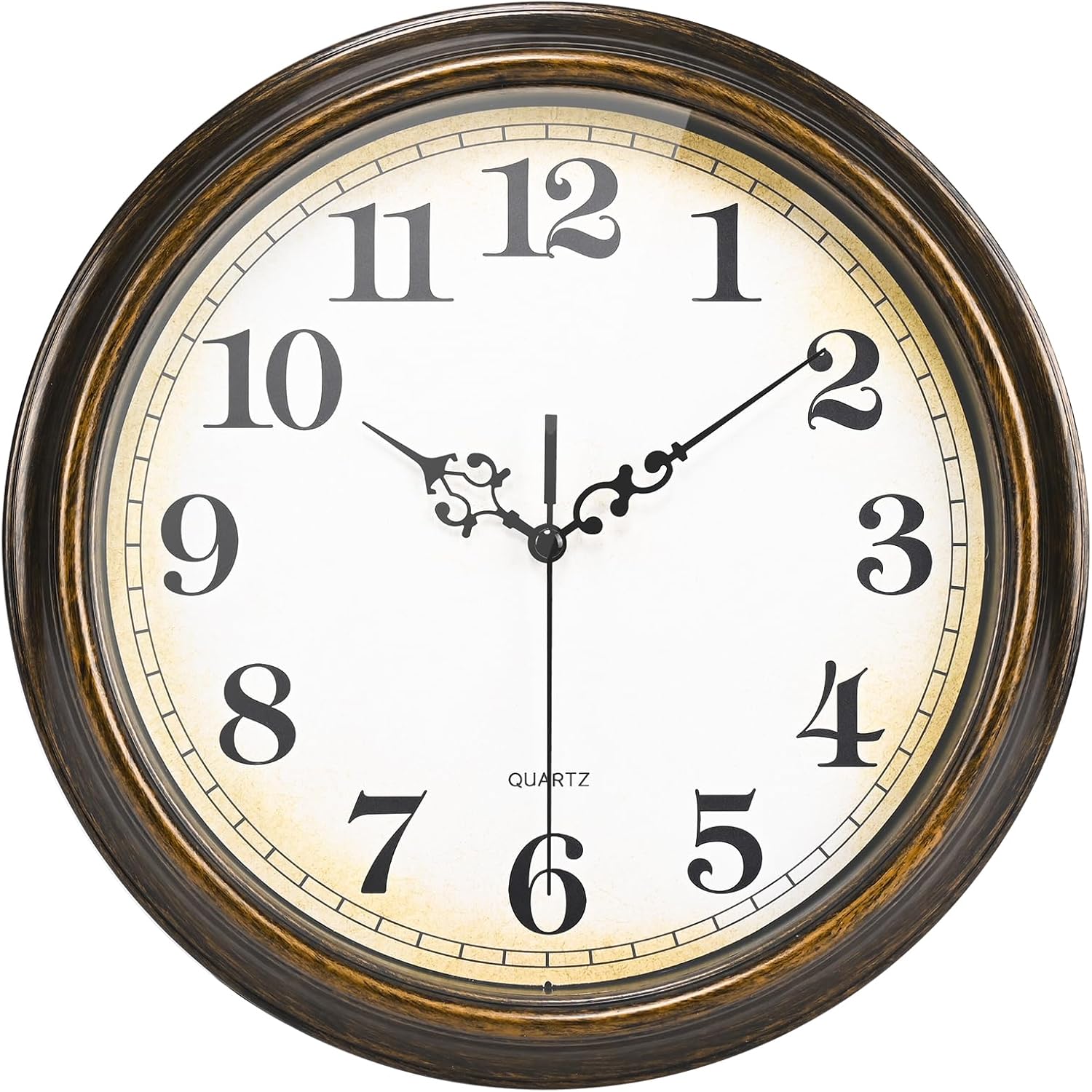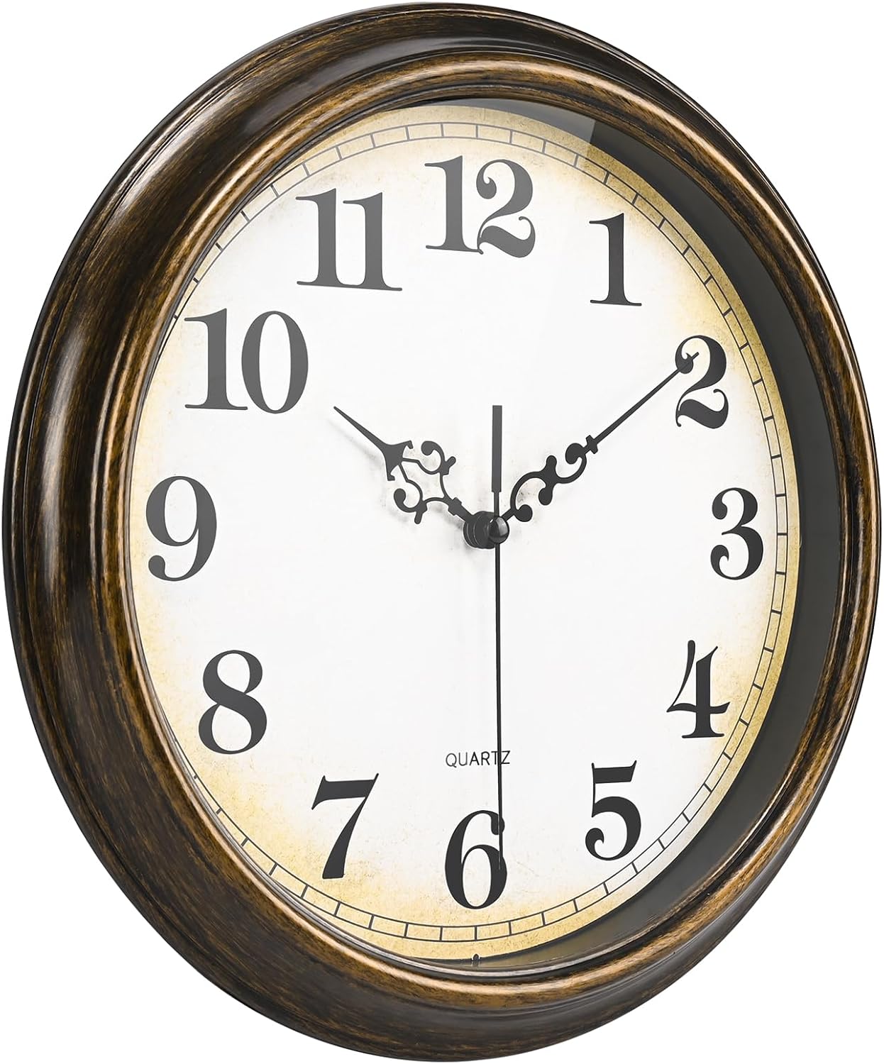 Wall Clock Battery Operated Silent Non-Ticking Vintage Wall Clocks for Kitchen, School, Living Room (12Inch, Bronze)