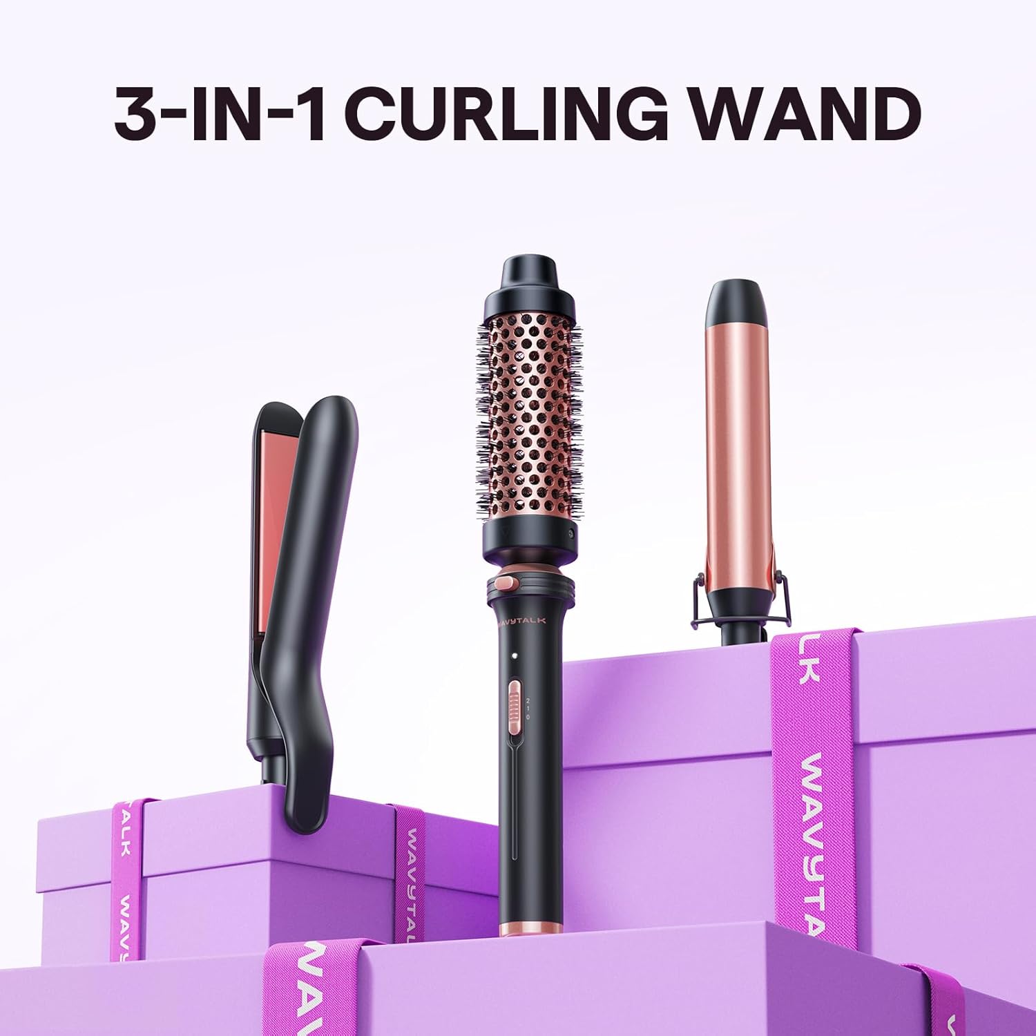 One Tool, Endless Looks: This wavytalk multi curl 3 in 1 Curling Wand Set contains an 1.5 inch thermal brush, an 1 1/4 inch curling iron, a 1 inch flat iron & curler 2in1 for endless styling possibilities