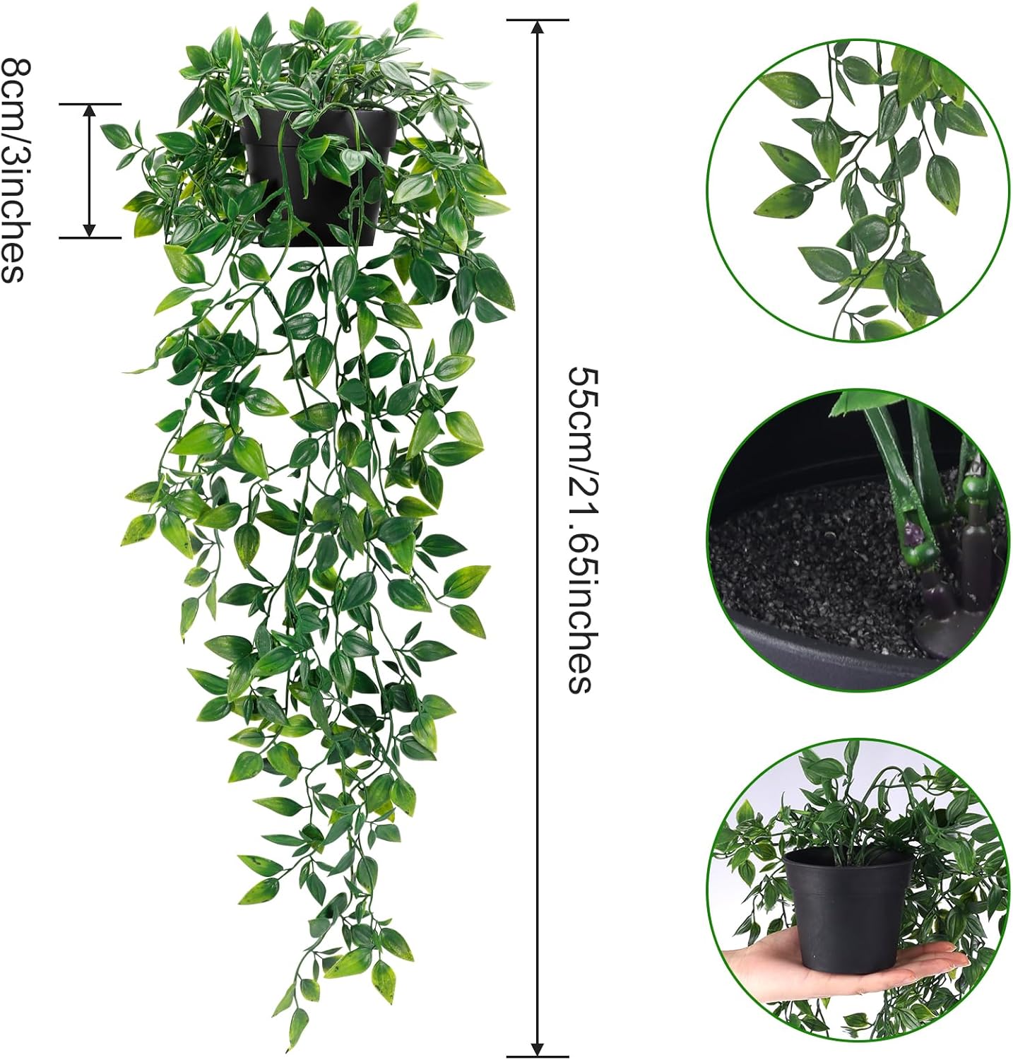 The pot is 3.5 ” x 3.2 “(W x H), the whole length of the hanging plants is 21.65 “.