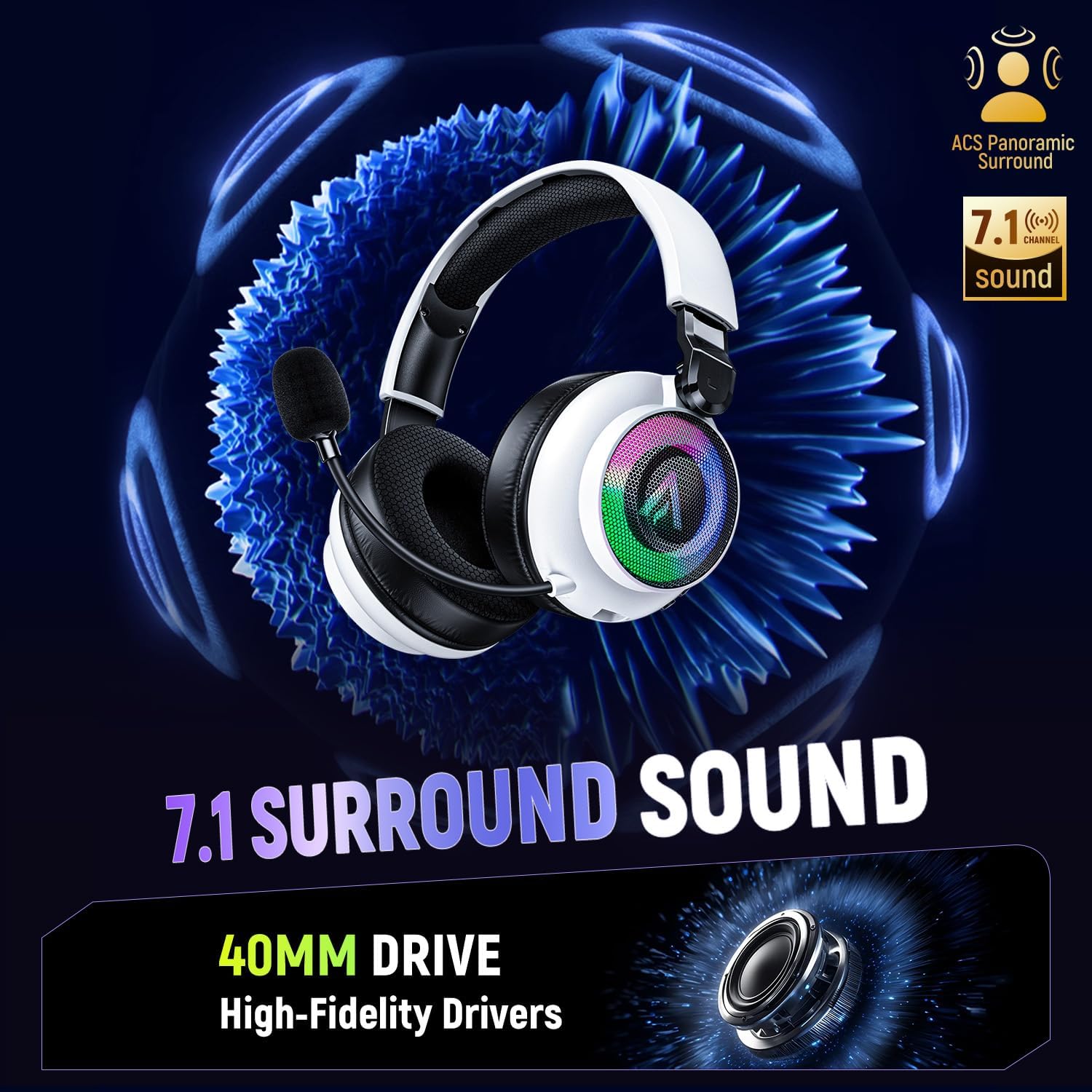 【Immersive 7.1 Surround Sound & Hi-Fi Drivers】Equipped with 40mm high-fidelity drivers and virtual 7.1 surround sound for crystal-clear highs, rich bass, and precise positional audio—giving you a true competitive edge in any battle