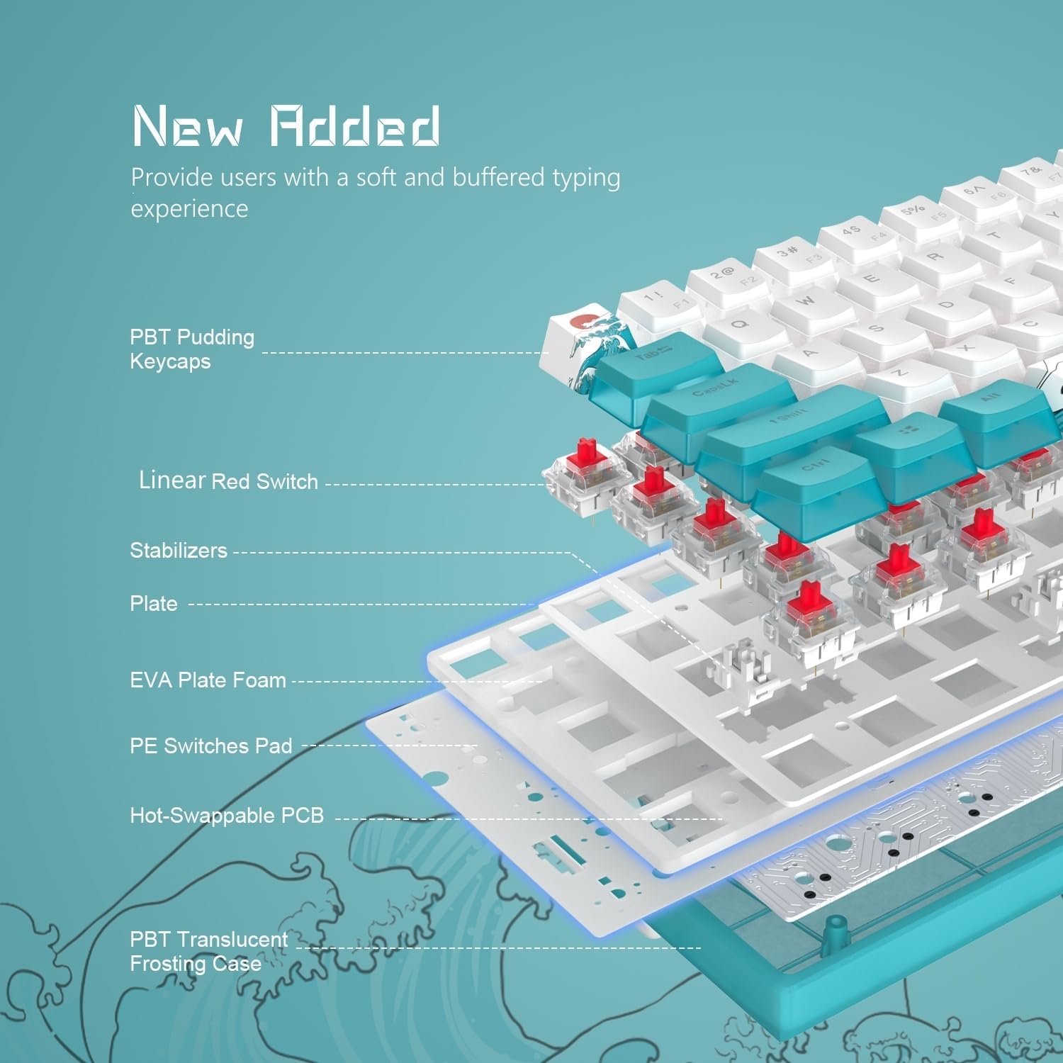 【 Multi-Layer Filling Material for Keyboard 】The gaming keyboard has added the Featuring Multi layers of sound-dampening fillings, significantly reduce the sound resonance between the metals and reduce the hollow noise, which provides a richer operating space for keyboard DIY enthusiasts. Pad can maximally absorb hollow sound and provide extra stable typing feeling.
