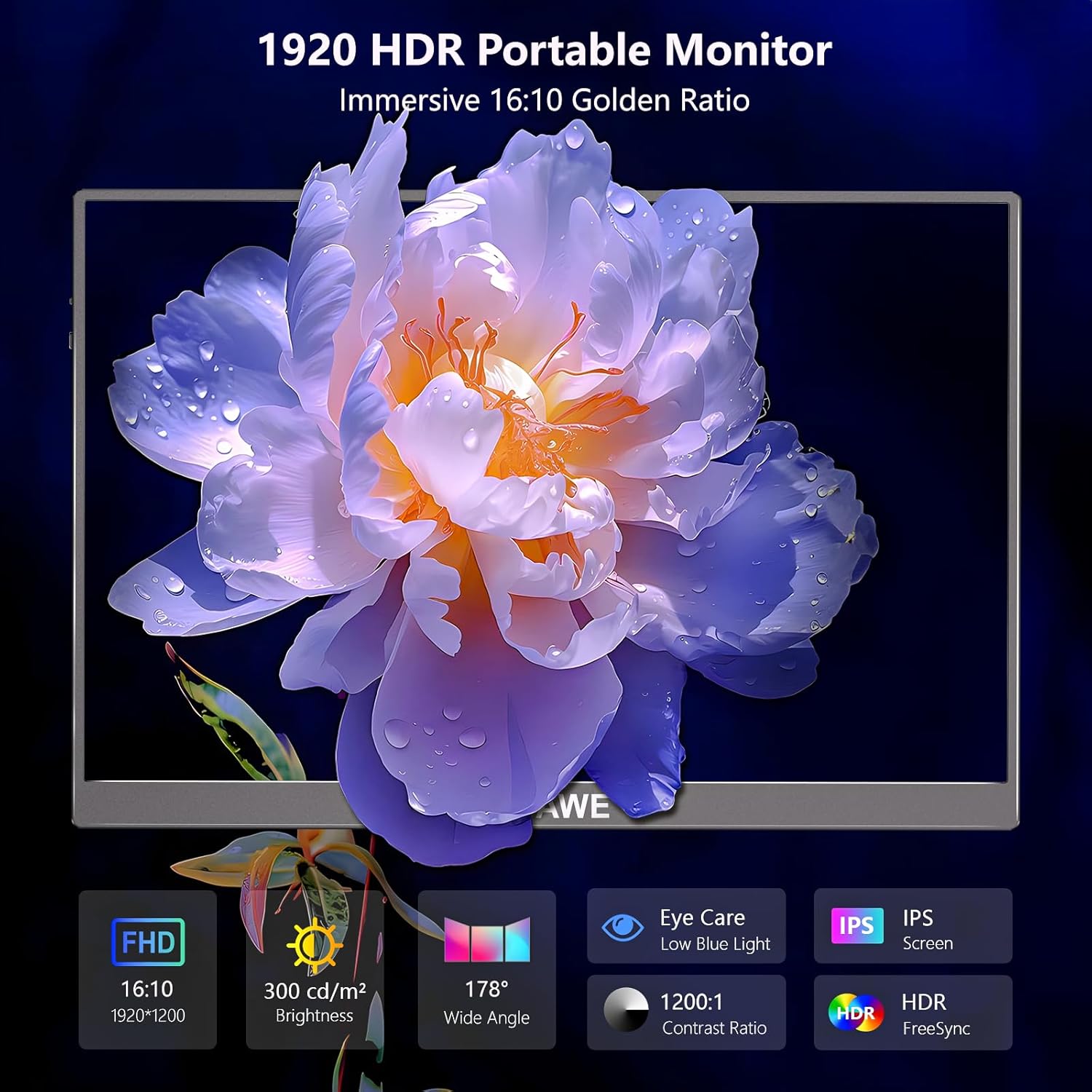 1200P 16” Portable Laptop Monitor: 100% sRGB Control/ ΔE<2 Color Accuracy. The 16″ portable monitor with 1920x1200P, featuring 300cd/m² brightness, a 1200:1 contrast ratio, HDR, Freesync, and low blue light, making your gaming and work experience truly immersive. It is suitable for various application scenarios such as meeting rooms, shopping malls, office buildings, cafes, universities, and industrial parks.