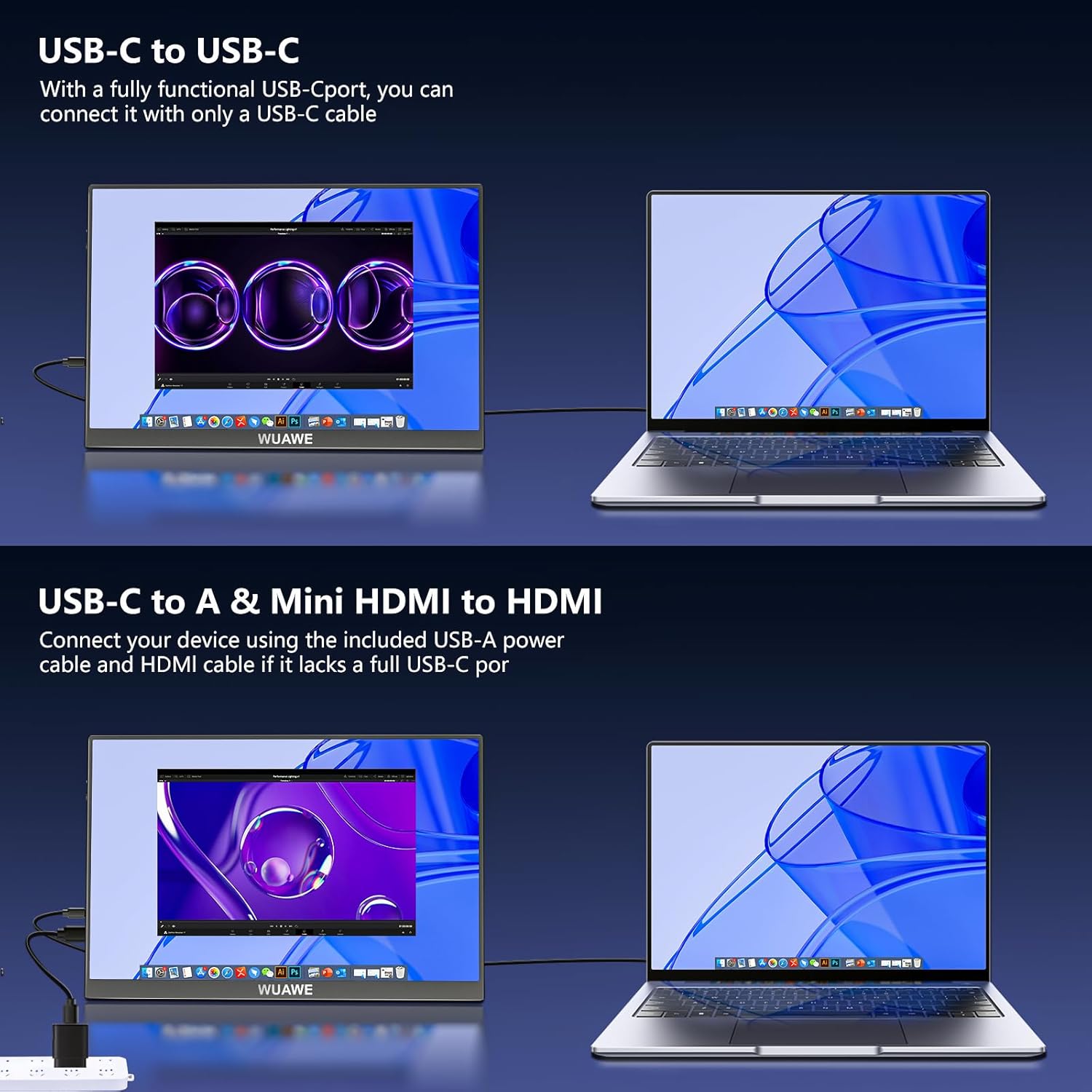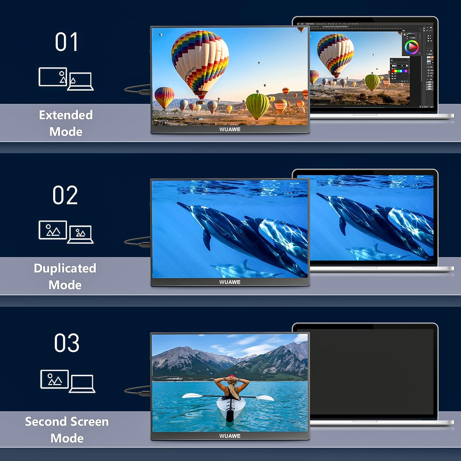 The WUAWE 16-inch portable display features a 100% sRGB color-accurate IPS panel and USB-C single-cable connectivity that extends your laptop screen in seconds.