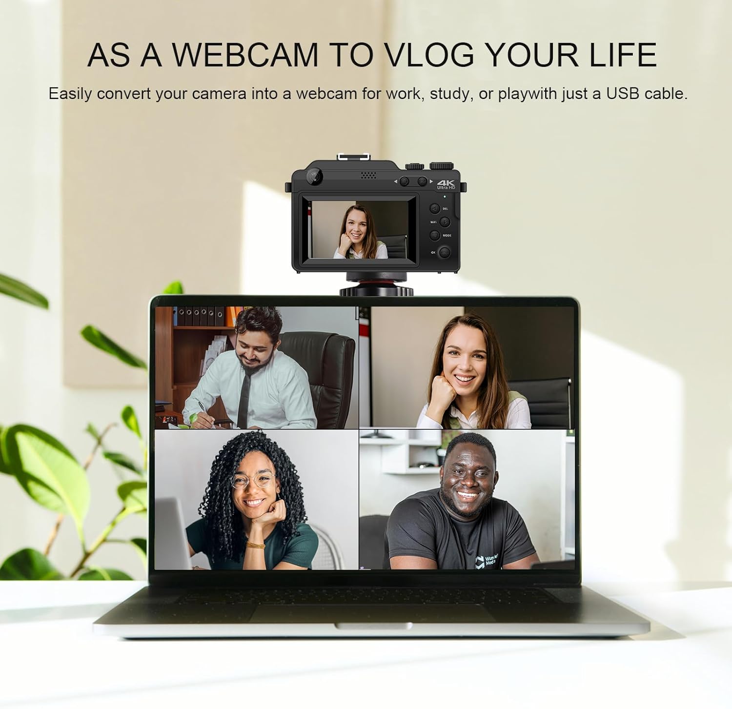 Doubles as A Webcam:This photo camera is more than just a photography tool; it can also transform into a high-definition webcam to meet your video calling and live streaming needs.With a simple USB connection, requiring no complex setup—just plug and play for quick and easy use.