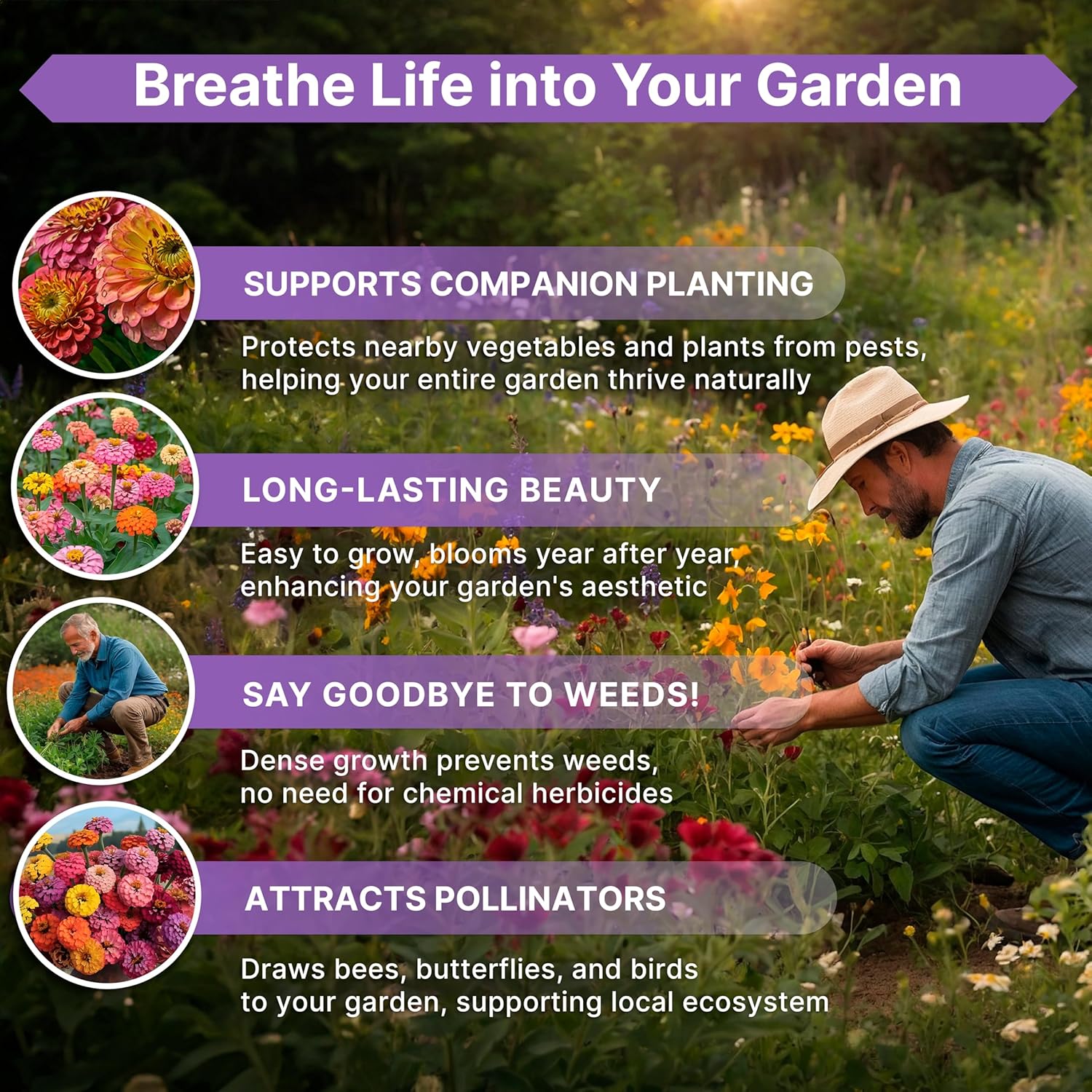 Easy to grow – Perfect for beginners and experienced gardeners, our zinnia seed package includes detailed tips for success in any climate or soil type. Simply scan the QR codes on the seed packet to access an online growing guide and learn how to plant and care for zinnia like a professional gardener.